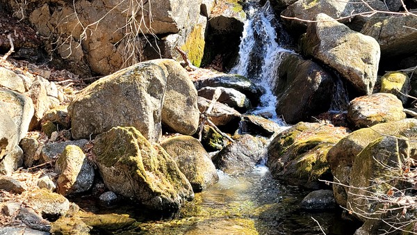 산길을 더 오르면 또 다른 계절이 모습을 드러낸다. 겨우내 얼어 있던 땅이 녹으면서 계곡물은 힘차게 흐른다.
