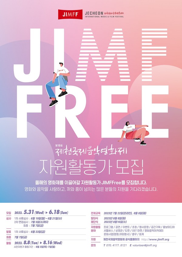 주최 측은 오는 18일까지 음악영화제 자원활동가 9개 분야 250명 정도의 '짐프리(JIMFFree)'를 모집한다.