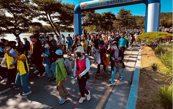 올해로 세 번째를 맞는 삼한의 초록길 걷기 행사에 전국에서 1300여명이 참가 신청을 했다.