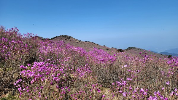 만개한 진달래꽃에 콧노래가 절로 난다. 아직 피지 않은 어린 꽃봉우리도 곧 피어오를 것이다. 꽃밭 사이사이 쉼터에 모여 앉은 사람들의 표정이 꽃보다 아름답다.