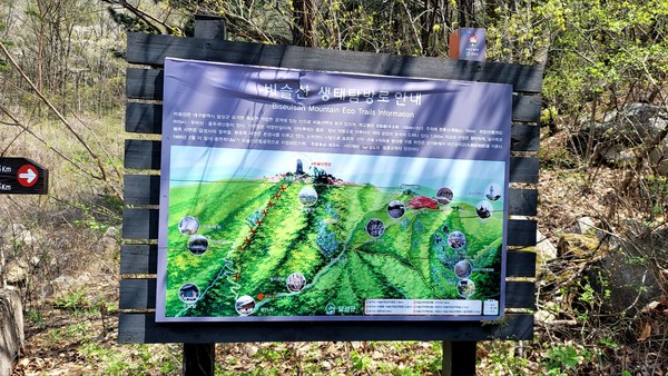 자갈길이라 걸음을 서두르지 않고 천천히 발을 내디딘다. 돌길이 익숙해지자 주변 산세가 눈에 들어온다. 멀리 보이는 기괴한 암석, 새로 나온 연한 푸른 잎이 뽀빠이의 시금치처럼 기운나게 한다. 천천히 들숨과 날숨을 반복하며 좋은 기운을 챙긴다. 새순이 주는 설렘에 걸음이 가볍다.