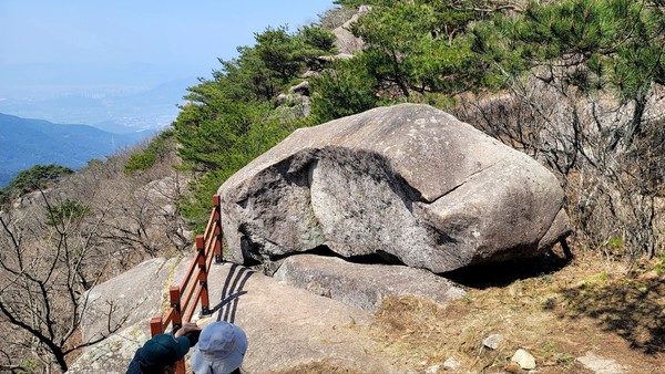 대견사 마당에 마련된 식수대 물맛이 끝내준다. 인근 기묘한 모양의 바위들을 찾는 재미가 쏠쏠했다. 상감모자 바위, 뽀뽀바위, 백곰바위, 큰거북바위. 한눈에 알아볼 수 있는 바위와 마주하니 짜릿한 전율이 느껴졌다.