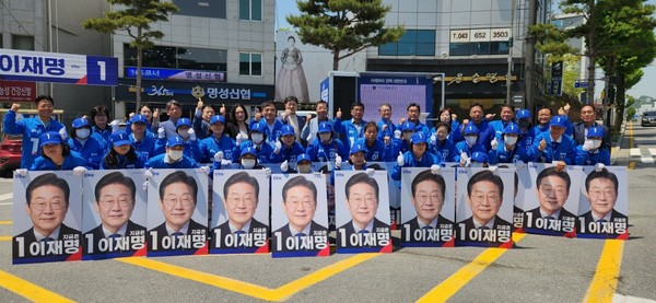 참석자들은 '기호 1번 이재명'의 압도적인 승리를 염원하며 다가오는 대통령 선거에서 반드시 승리하겠다는 결의를 다졌다.
