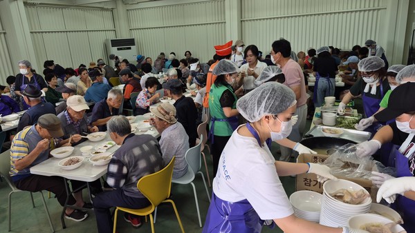 민간 사회복지단체 ‘이음봉사단’(단장 이준석)이 직접 끓인 삼계탕 360인분을 어르신들과 주민들에게 대접했다.