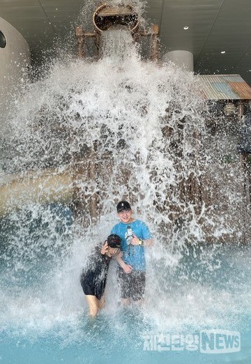 둘째 딸을 위한 이벤트는 계속됐다. 온 가족이 모여 리솜 헤브나인에서 마음껏 물놀이를 했다. ‘노약자는 조심하라’는 경고문이 붙어 있어도 나는 겁도 없이 바가지에서 쏟아지는 물 폭탄을 계속 맞았다. 부력의 힘이 얼마나 센지 몸이 휘청거렸지만, 잘 버티는 걸 보니 내가 노인이 맞나 싶었다. 튜브 놀이도 몇 바퀴를 돌아도 지칠 줄 몰랐다.