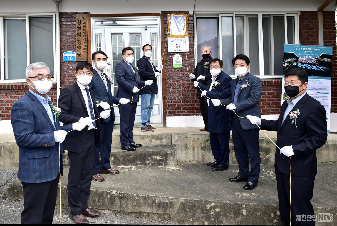 제천시는 2일 수산면 상천마을에서 ‘제8회 행복농촌만들기 콘테스트’ 은상 수상 현판 제막식을 했다.