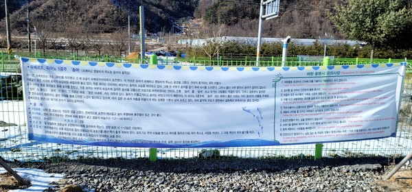 되돌아 올때는 풍경을 보는 재미가 쏠쏠하다. 허허벌판인줄 알았던 널찍한 농로 옆에 송어장이 있다. 우리가 알고 있는 슈베르트의 피아노 5중주는 '숭어'가 아니라 '송어'라는 설명도 처음 봤다. 현수막의 내용이 새롭다. 가사에 나오는 '맑은 시내'에 사는 것은 민물고기 송어이지, 바다에 사는 숭어가 될 수 없다는 설명이다. 글을 읽으며 고개를 끄덕이게 되었다.