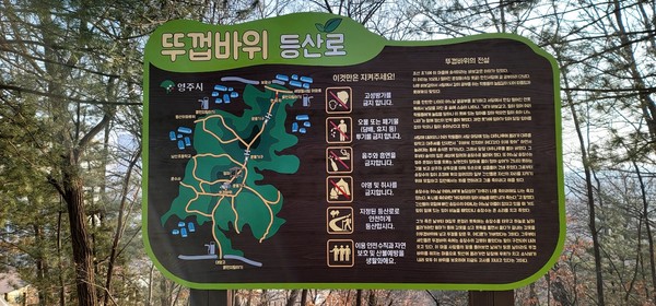 나중에 안 일이지만 뚜께바위로 오르는 길은 여러갈래다. 영주시 휴천동 일대 아파트나 개인 주택 어디에서도 접근이 용이하다. 나는 대영중.고등학교가 있는 아파트 촌에서 출발하였다.
