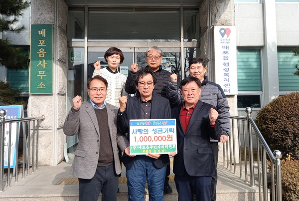 단양군 매포읍주민자치위원회(위원장 김기학)는 지난 15일 매포읍지역사회보장협의체(민간위원장 박영렬)를 통해 사랑의 성금 100만 원을 전달했다.
