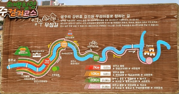 계절이 바뀌는 것은 옷차림으로 안다. 천연색 옷을 입고 파크골프장을 다니는 어르신들의 표정이 봄이다. 다양한 체육시설, 자전거길, 산책로, 너른 잔디밭, 둔치를 따라 흐르는 강물은 영주의 자랑이다.