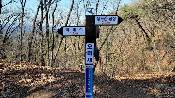 요기를 한 뒤 다시 걷는다. 피재점(784m)에서 마지막 발도장을 찍고 출발지였던 피재로 돌아왔다. 피재~송한재~오미재~피재점~피재 원점 회귀 코스. 아주 힘든 구간은 없지만 운동효과가 크다. 임도를 오르며 몸을 풀고 나머지 산길은 오르막, 내리막, 평지로 건강산행에 제격이다. 등에 땀이 흥건할정도의 운동 강도지만 지치지 않는다. 진달래 만발한 봄산이 온몸에 기운을 불어 넣어줬다. 다음에는 피재점에서 석기암까지 다녀오리라 다짐한다.