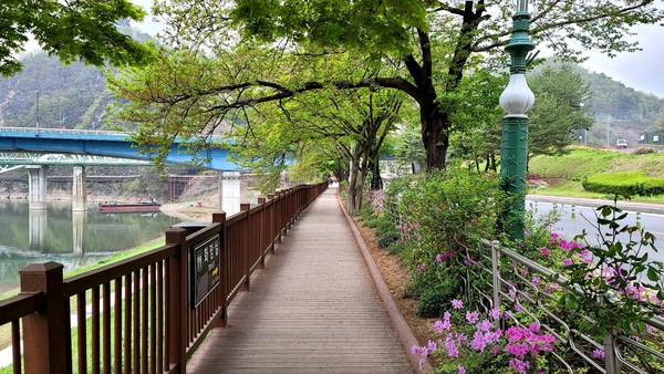 느림보강물길 5코스인 수양개역사문화길은 단양읍 상진대교부터 수양개선사유물전시관까지 3.6㎞ 구간으로 평이하다.