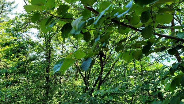 푸른 하늘을 올려본다. 순간 눈이 번쩍 뜨였다. 오디가 주렁주렁 매달려 있는게 아닌가. 오늘은 먹기 좋은 길이 어울리겠다. 점심 칼국수, 산딸기, 거기에 오디까지! 팔을 길게 뻗어 오디를 따려는 찰나 '허허' 헛웃음과 함께 눈뜬 장님이 됐다. 오디가 아니었다.