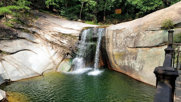 조금 내려오니 용추폭포 안내판이 나온다. 안전요원 두 분의 친절한 설명을 듣고 용추폭포와 마주했다. 오래 전 익사 사고 발생 후 이곳의 출입을 통제하고 있었다.