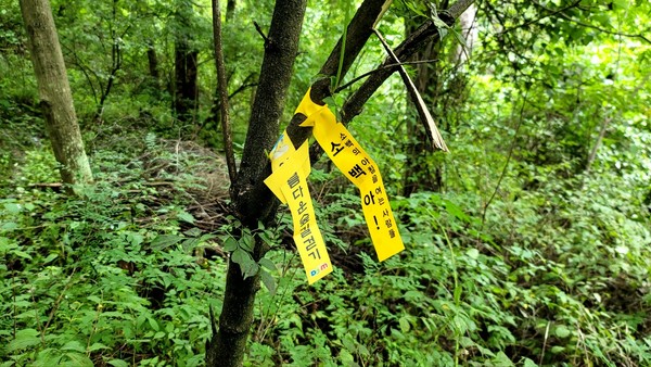비가 내려 숲은 습한 데다 풀이 무성하다. '뱀조심'이라는 표지판을 보고 안전을 최대한 염두에 두기로 했다.