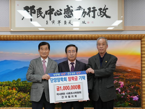 국사편찬위원회 사료조사위원회 전국협의회(회장 윤수경)는 지난 25일 단양장학회에 100만 원을 기탁했다.