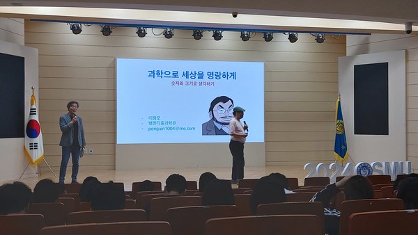 이정모 작가는 <과학으로 세상을 명랑하게>-숫자와 크기로 생각하기-를 주제로 과학 문해력에 관해 쉽고 재밌게 이야기했다.