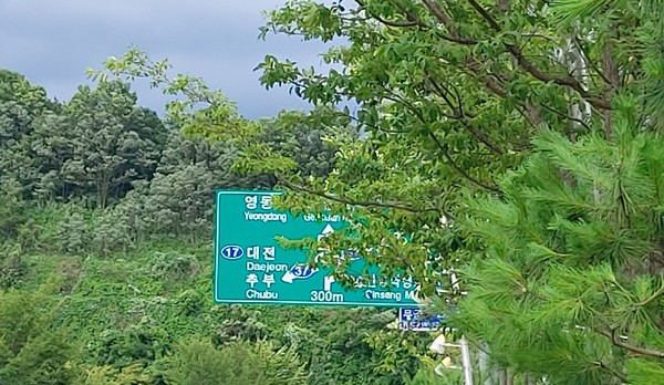 반쯤 가려진 교통표지판