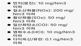 한국의 허용기준치에 비해 먼지, 황산화물, 일산화탄소, 염화수소가 더 엄격하다.
