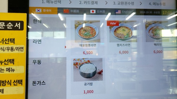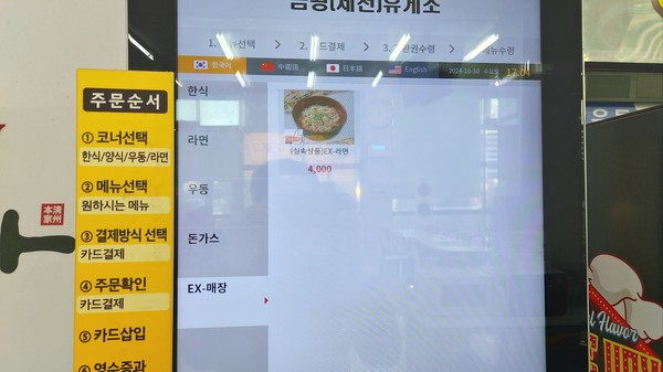 키오스크 메뉴 ex매장 또는 실속상품 메뉴를 찾아 클릭하면 거기에 계란까지 들어간 맛있는 라면이 숨어 있다.
