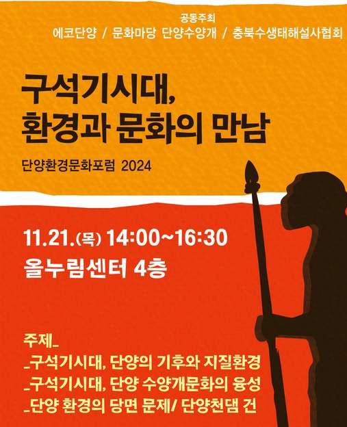 오는 21일(목) 오후2시 단양 올누림센터(4층)에서 단양의 3개 비영리민간단체(NGO)인 ‘에코단양’ ‘문화마당 단양수양개(구 수양개보존회)’ ‘충북수생태해설사협회’는 공동으로 2024년 단양 환경과 문화의 만남이란 주제로 포럼을 연다.