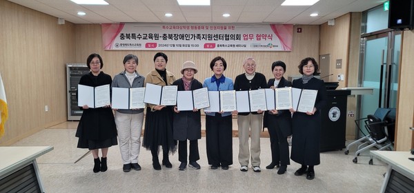 (사)충북장애인부모연대 충북장애인가족지원센터협의회(회장 한인선) 소속기관인 청주시·제천시·음성군·옥천군·보은군장애인가족지원센터, (사)충주시장애인부모연대 부설 충주장애인가족지원센터가 충청북도교육청 직속기관인 특수교육원(원장 이혜경)과 업무협약을 했다.