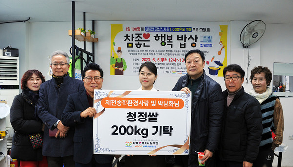 제천송학환경사랑(대표 박남화)이 23일 참좋은행복나눔재단(이사장 유영화)에 사랑의 쌀 200㎏을 기증했다.
